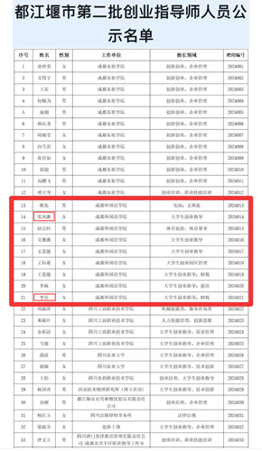 近日,都江堰市就业服务中心公布了都江堰市第二批市级创业指导师人员名单。我院张凤滟、李星2名教师获聘为都江堰市创业指导教师。